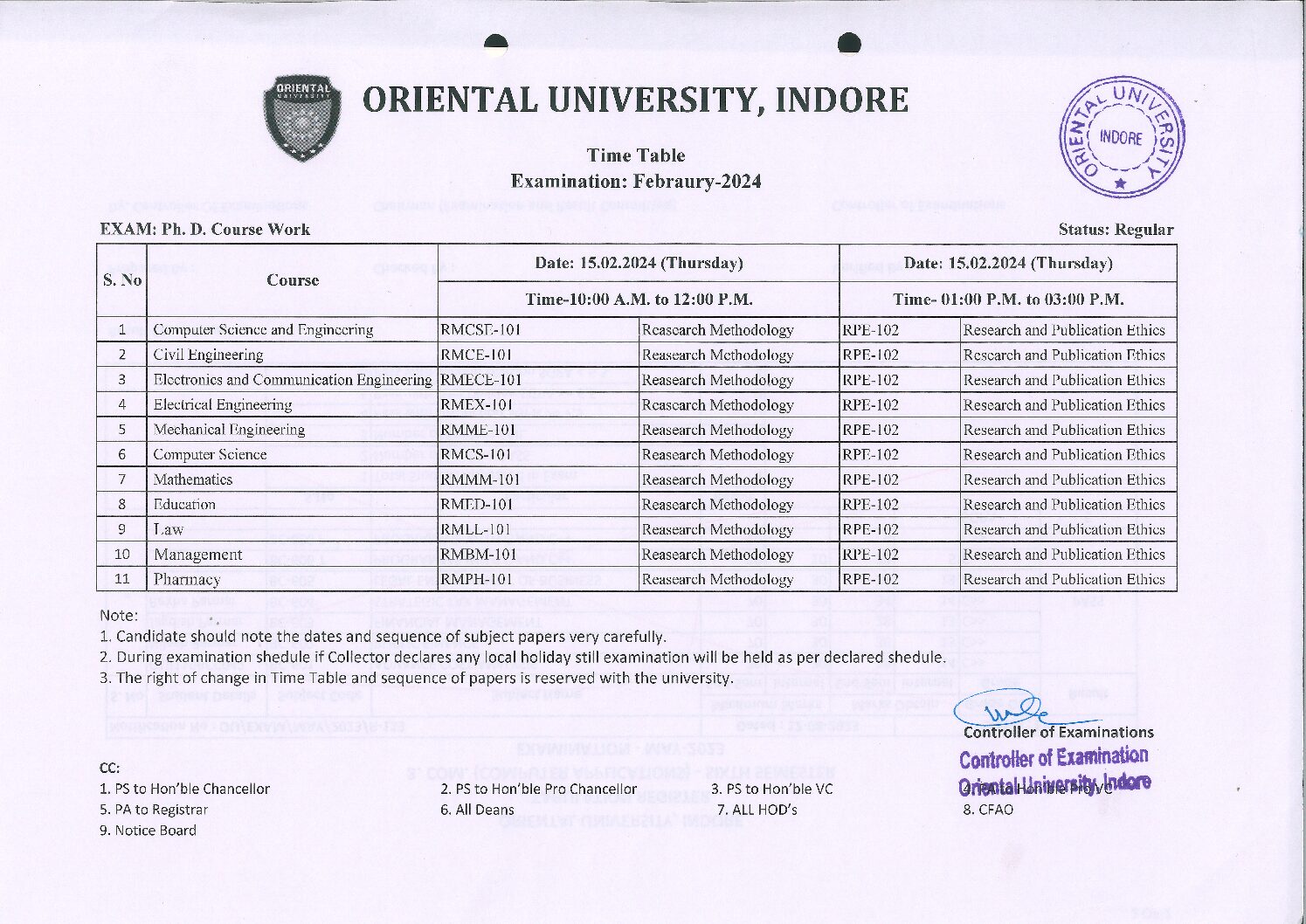 Student Zone > Examination > Sem Exam > Examination TimeTable