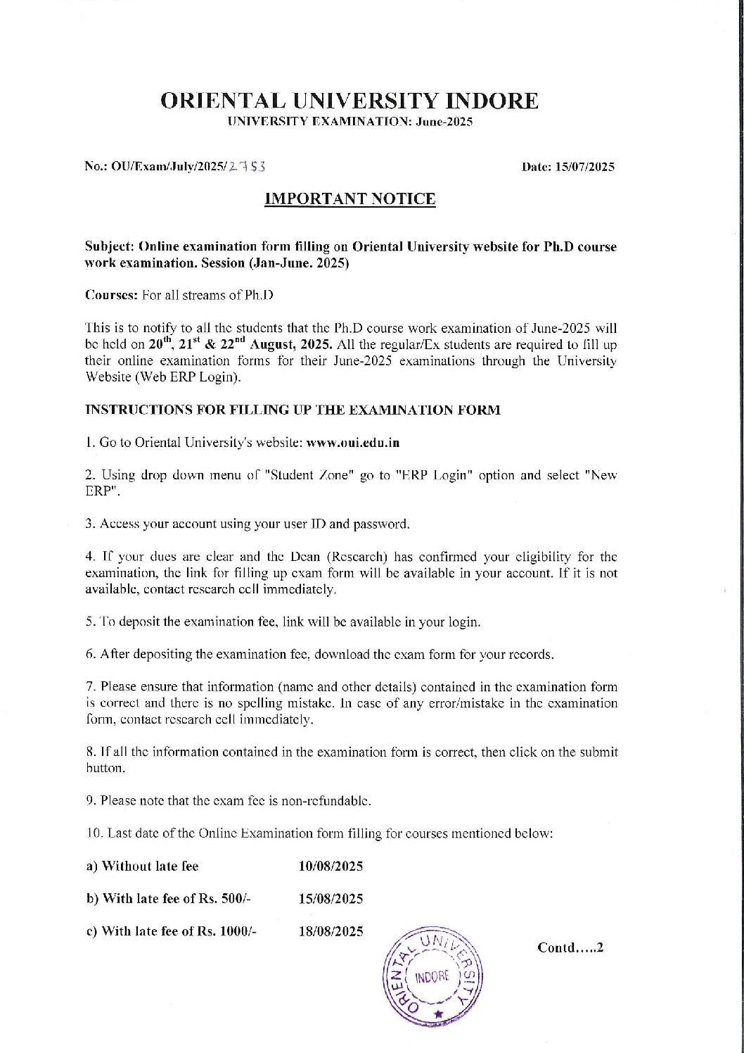 16 Jul2025 Ph.D. Course Work Examination Notification—August 2025ByAdminExam Notice, Exam Time Table, Ph. D.(0) CommentClick here