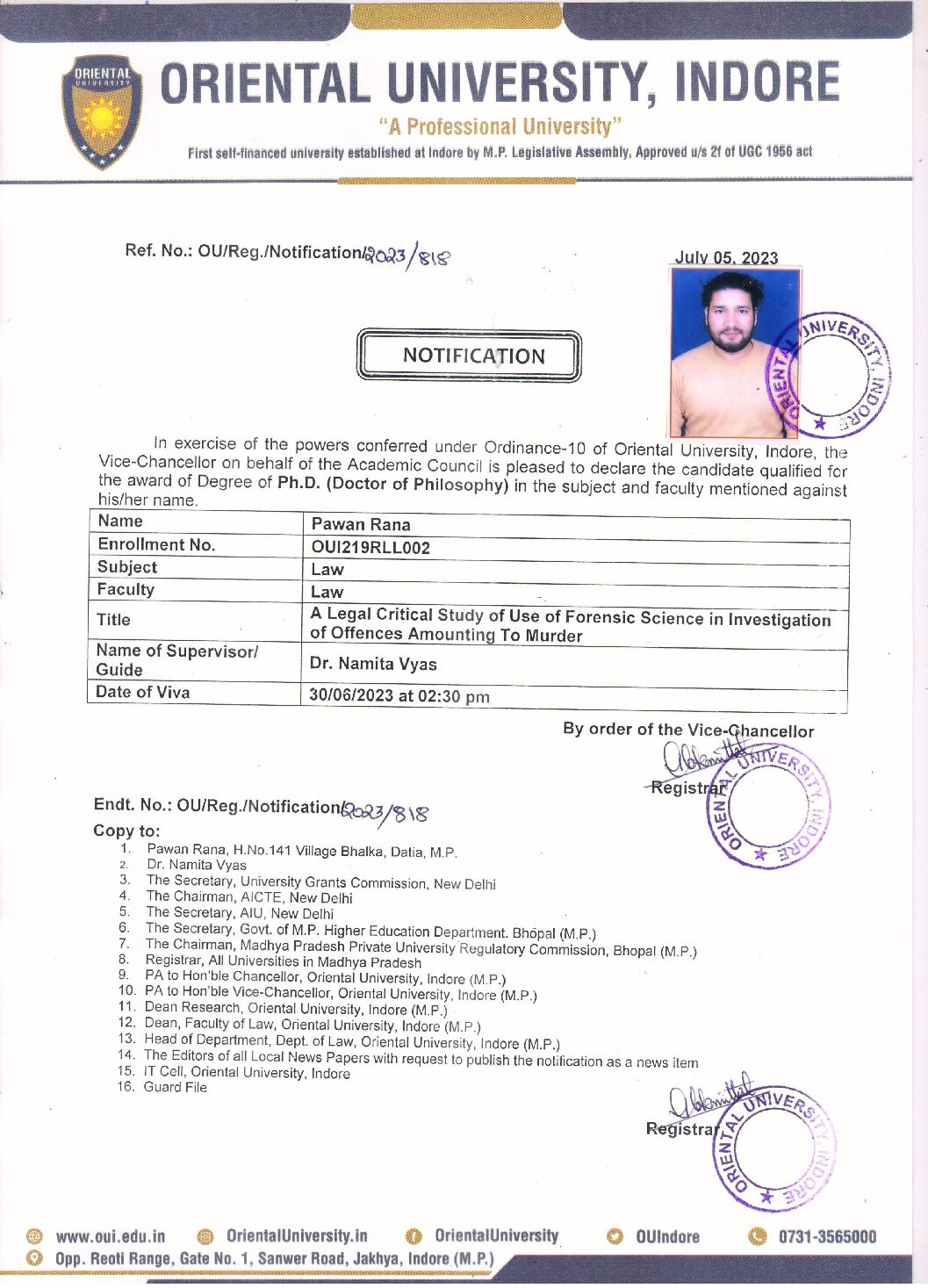 04 Jul2023 Online Examination Form Filing Notice And Examination Fee Details For July-2023 Examinations Of Ph.d CourseByOriental MainExam Notice, News, Notice, Ph. D.(0) Comment